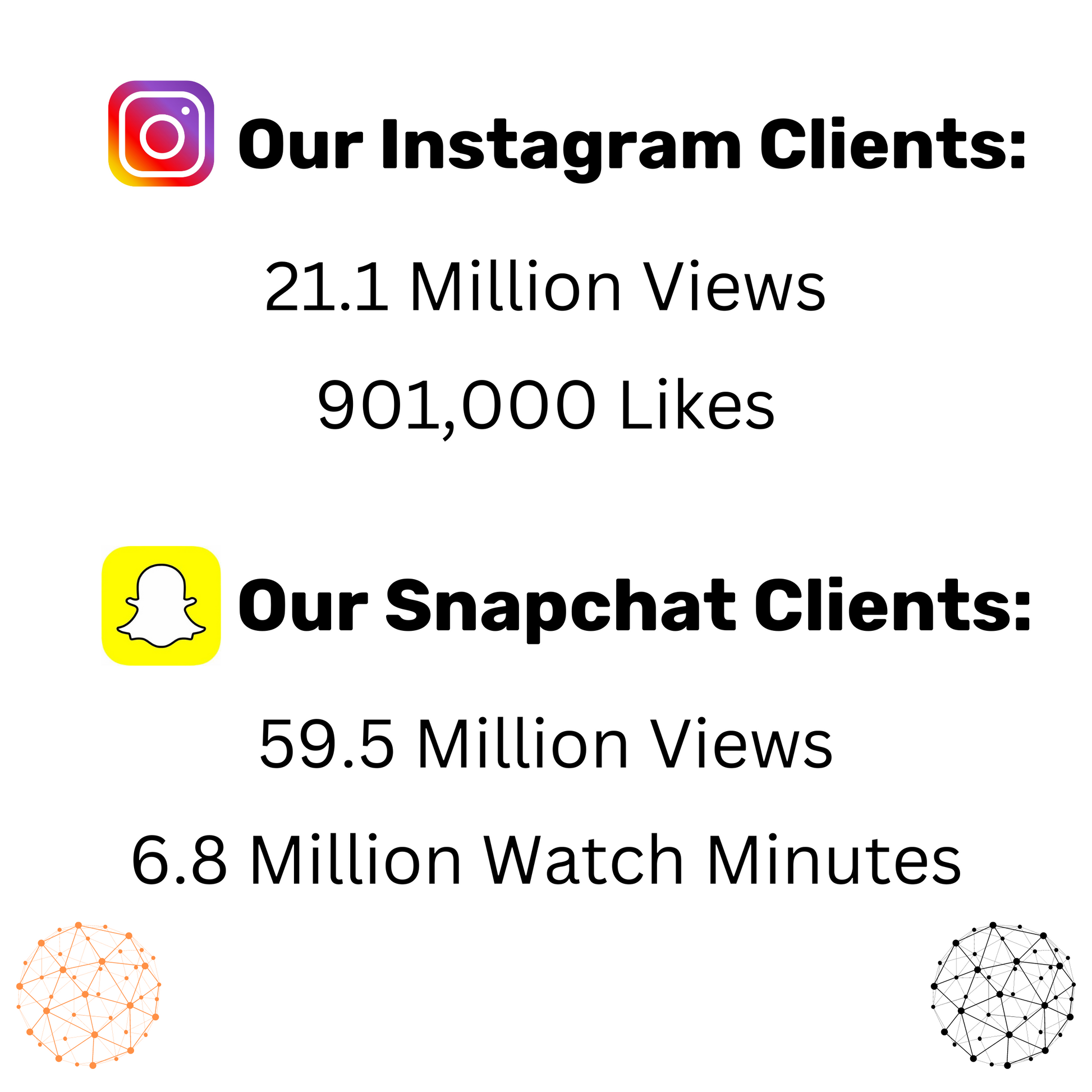 "When we first started working with NXS we had no idea how to create content effectively. After a few calls and freelancer hires, we felt completely different! Since then we've managed to get over 8,000,000 views on Snapchat Stories, generating thousands of dollars a month. Literally life changing!"