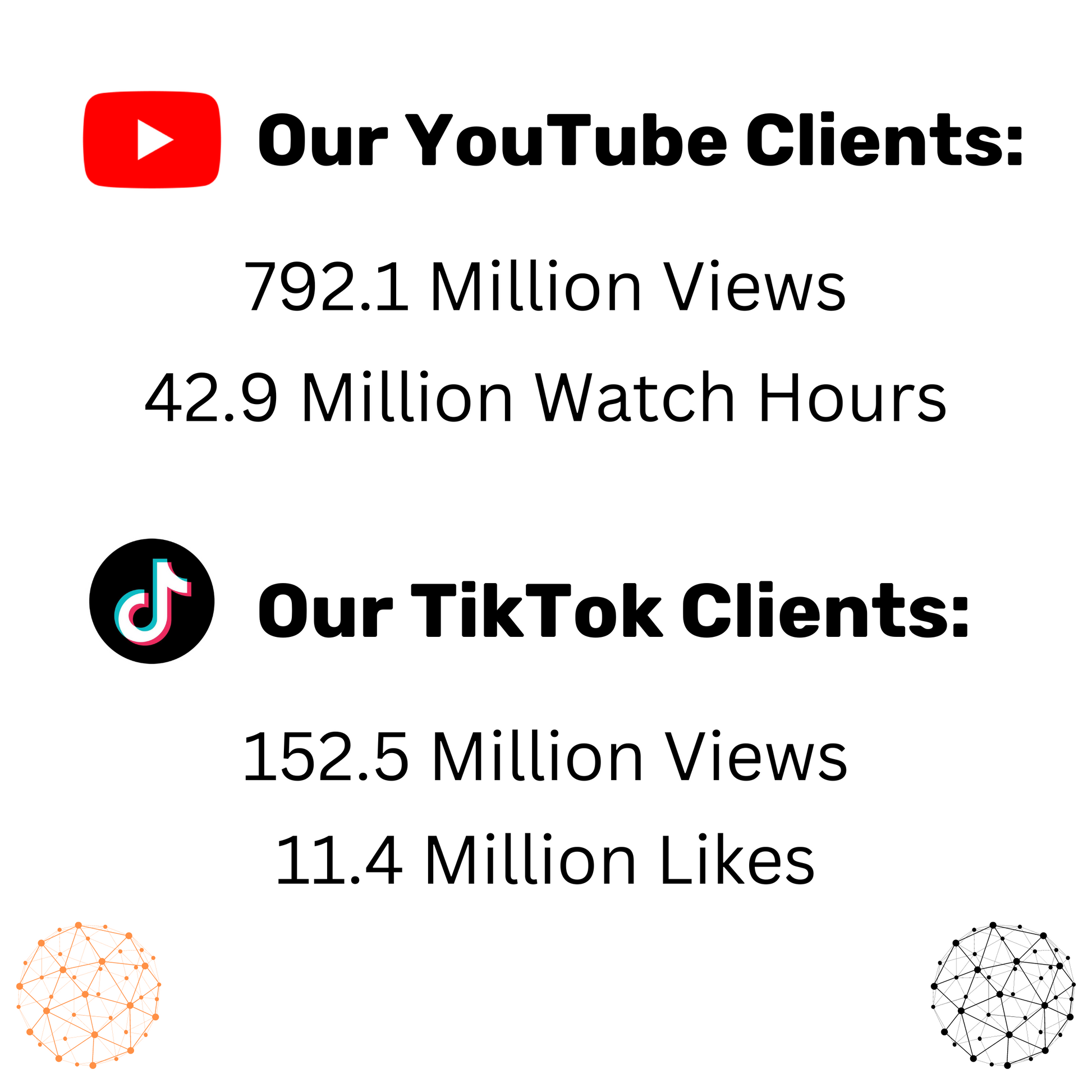 So far, we've managed to help our clients generate over 1,000,000,000 total views. What could we do for you?